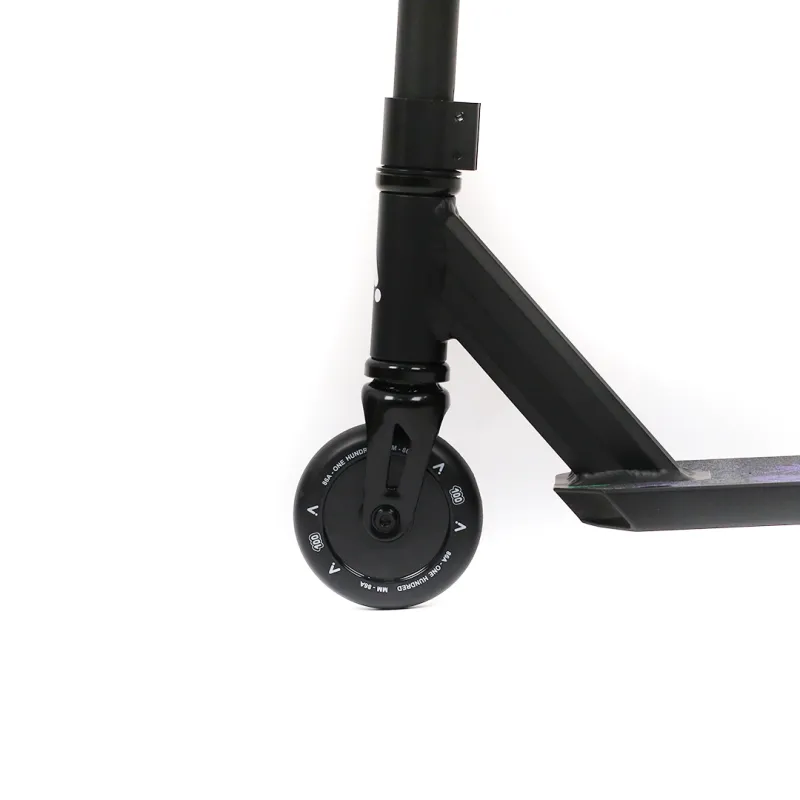Der ACTA Complete Scooter K2 Black wurde speziell für junge Rider und Anfänger entwickelt, die mit Vertrauen in den Freestyle einsteigen möchten. Sein ergonomisches Design und die hochwertigen Komponenten sorgen für ein optimales Fahrerlebnis, sodass auch Anfänger schnell Fortschritte machen und dabei Spaß haben können. Die Zuverlässigkeit dieses Scooters beruht auf einer robusten Konstruktion und langlebigen Materialien. Das einteilige Deck aus Chromoly-Stahl 6000 sorgt für eine hohe Festigkeit, während die Gabel aus Chromoly-Stahl 4130 eine hervorragende Stoßfestigkeit gewährleistet. Die 100-mm-Rollen mit Metallkern bieten Grip und Laufruhe, die ideal für Tricks im Skatepark sind. Das IHC-Kompressionssystem erleichtert die Wartung und sorgt für mehr Stabilität bei Sprüngen und Tricks.