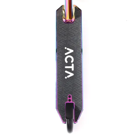 Il monopattino completo ACTA KSP Neochrome è stato progettato appositamente per i giovani piloti e i principianti che vogliono imparare il freestyle con sicurezza. Il suo design ergonomico e i componenti di alta qualità offrono un'esperienza di guida ottimale, consentendo ai principianti di progredire rapidamente divertendosi. L'affidabilità di questo monopattino si basa su una costruzione robusta e su materiali durevoli. Il ponte monoblocco è realizzato in acciaio cromato 6000, che garantisce una robustezza assoluta, mentre la forcella in acciaio cromato 4130 offre un'eccellente resistenza agli urti. Le ruote da 100 mm con anima in metallo offrono un'aderenza e una scorrevolezza ideali per i trick da skatepark. Il sistema di compressione IHC facilita la manutenzione e garantisce una maggiore stabilità durante i salti e i trick. Il colore Neochrome, noto anche come Oilslick, è uno dei colori più popolari tra i giovani rider.